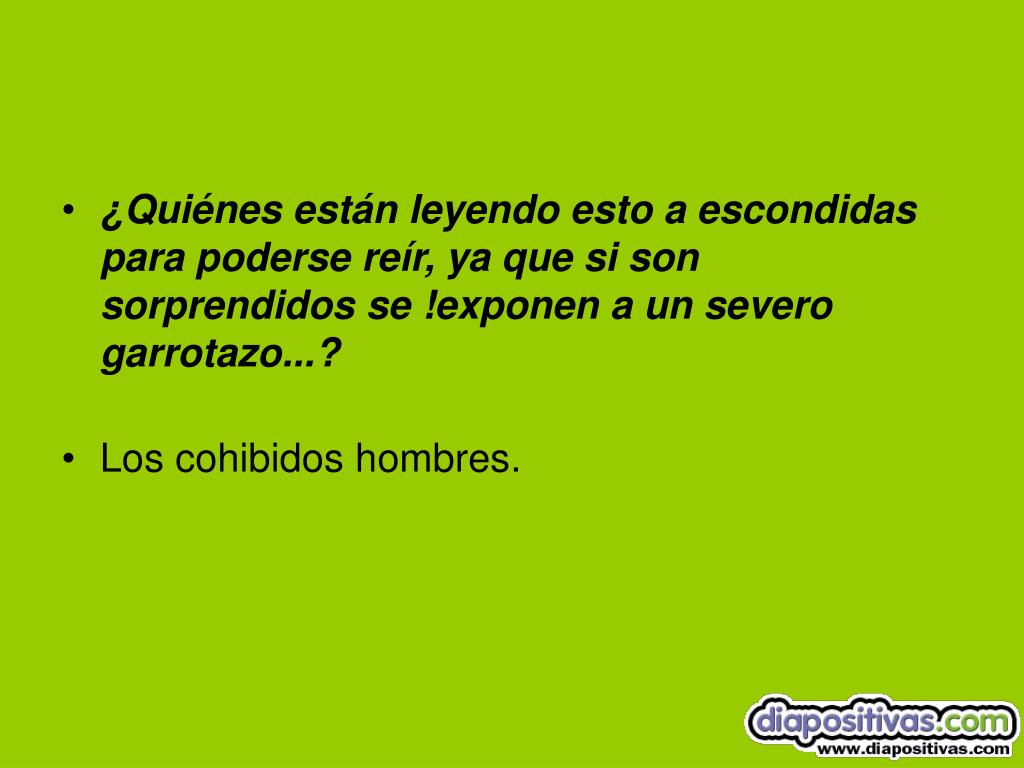 ¿Quiénes están leyendo esto a escondidas para poderse reír, ya que si son sorprendidos se !exponen a un severo garrotazo...? • Los cohibidos hombres.