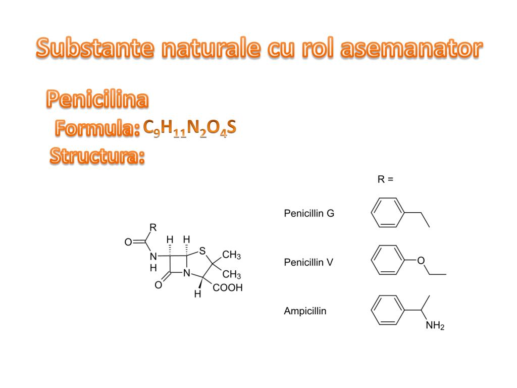 Substantenaturale cu rolasemanator Penicilina Formula: Structura: C9H11N2O4S