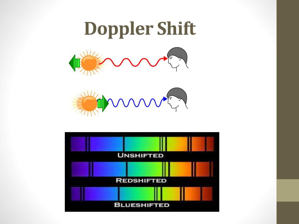 Expansion of the Universe • Doppler Effect: a shift of wavelengths (sound or light waves) that reflect a change of pitch or change of spectrograph • As a train approaches you the wavelengths are compressed and pitch is high, as it passes the wavelengths are expanded and pitch is lower • Light does same thing, rather a shift on the spectrograph toward to red it is going away from earth, and if shifted to blue it is approaching earth
