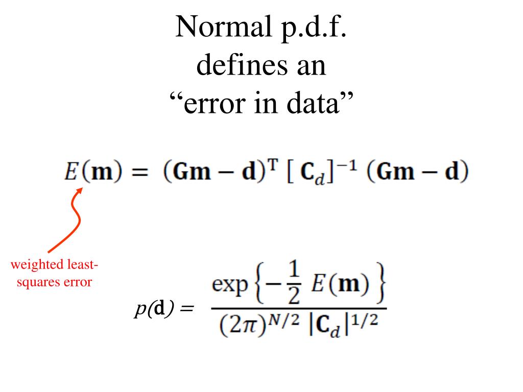 Normal p.d.f.defines an“error in data” weighted least-squares error p(d) =