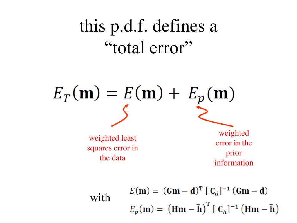 this p.d.f. defines a“total error” weighted least squares error in the data weighted error in the prior information with