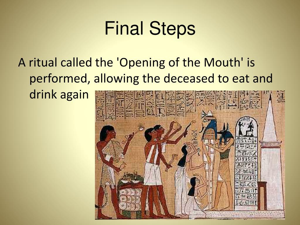 Final Steps A ritual called the 'Opening of the Mouth' is performed, allowing the deceased to eat and drink again