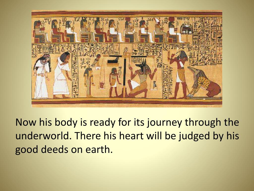 Now his body is ready for its journey through the underworld. There his heart will be judged by his good deeds on earth.