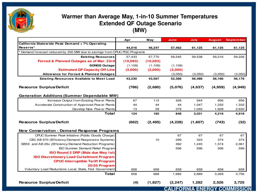 Warmer than Average May, 1-in-10 Summer Temperatures Extended QF Outage Scenario (MW)