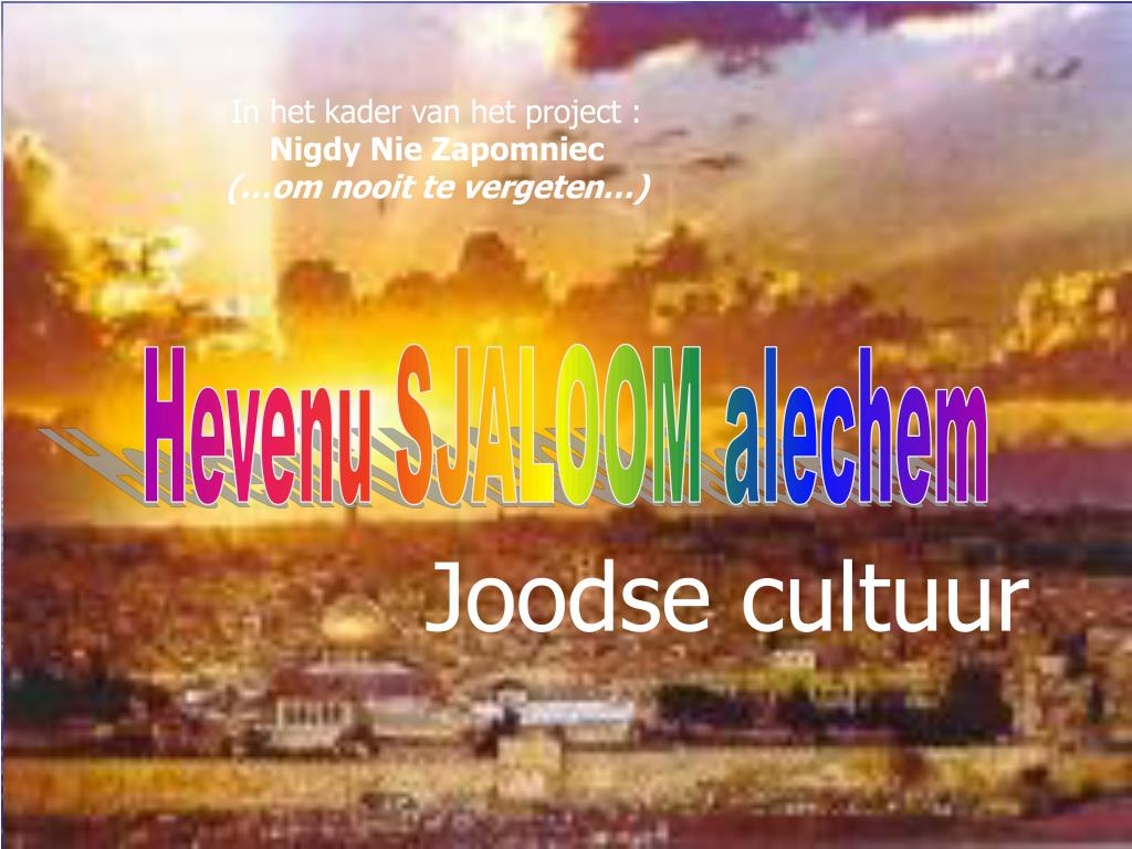 In het kader van het project : Nigdy Nie Zapomniec (…om nooit te vergeten…) Hevenu SJALOOM alechem Joodse cultuur Joodse cultuur - Devriendt Jan