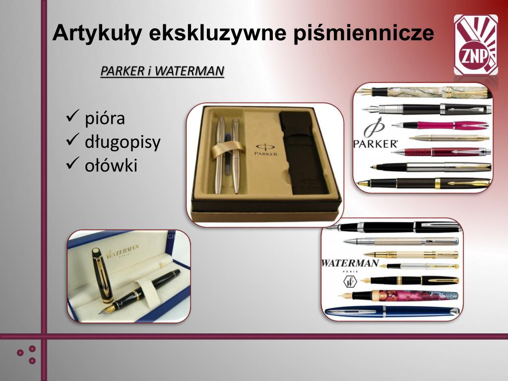 Artykuły ekskluzywne piśmiennicze PARKER i WATERMAN • pióra • długopisy • ołówki