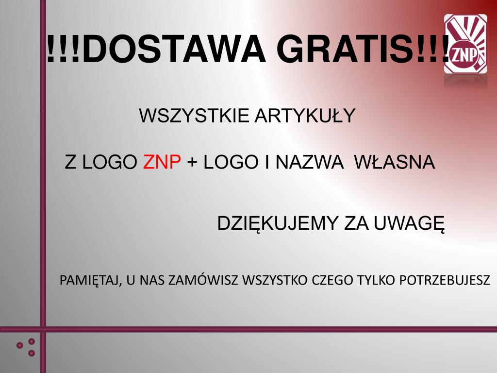 !!!DOSTAWA GRATIS!!! WSZYSTKIE ARTYKUŁY Z LOGO ZNP + LOGO I NAZWA WŁASNA DZIĘKUJEMY ZA UWAGĘ PAMIĘTAJ, U NAS ZAMÓWISZ WSZYSTKO CZEGO TYLKO POTRZEBUJESZ