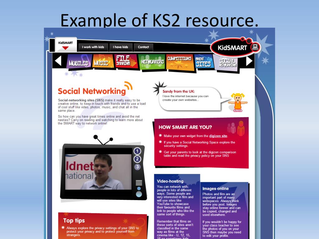 Example of KS1 resource. http://www.childnet.com/kia/primary/smartadventure/chapter1.aspx