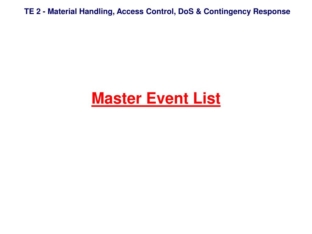 Following Presentation Slides arefor Controllers Only • Master Events List