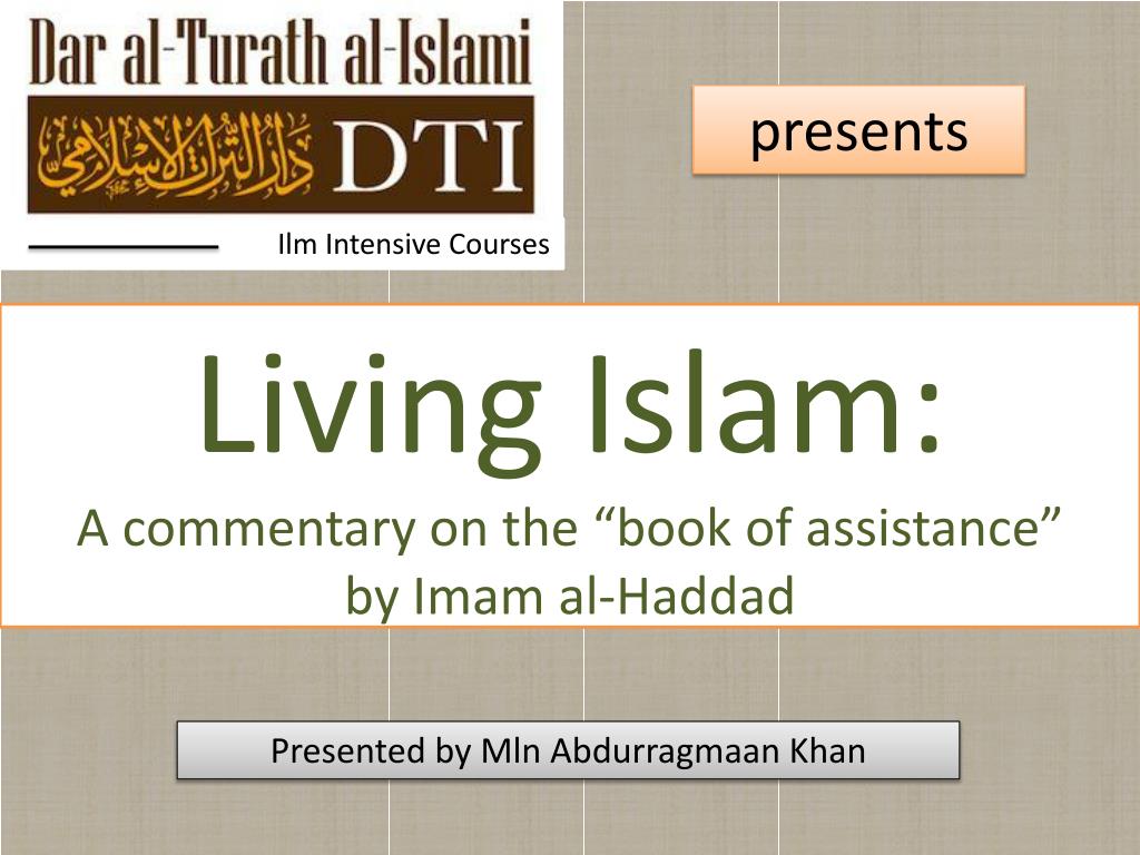 presents. Ilm Intensive Courses. Living Islam: A commentary on the “book of assistance” by Imam al-Haddad. Presented by Mln Abdurragmaan Khan. Book of assistance: Vigilance. Imam al-Haddad says,