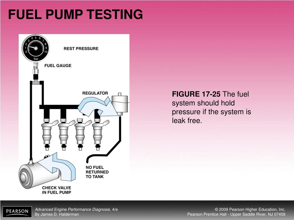 OBJECTIVES. After studying Chapter 17, the reader will be able to: Prepare for ASE Engine Performance (A8) certification test content area “C” (Fuel, Air Induction, and Exhaust Systems Diagnosis and Repair). Describe how to check an electric fuel pump for proper pressure and volume delivery.