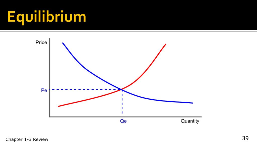 Equilibrium • ”Market clearing” balance • The Price level where Quantity Supplied is equal to Quantity Demanded. Chapter 1-3 Review 38