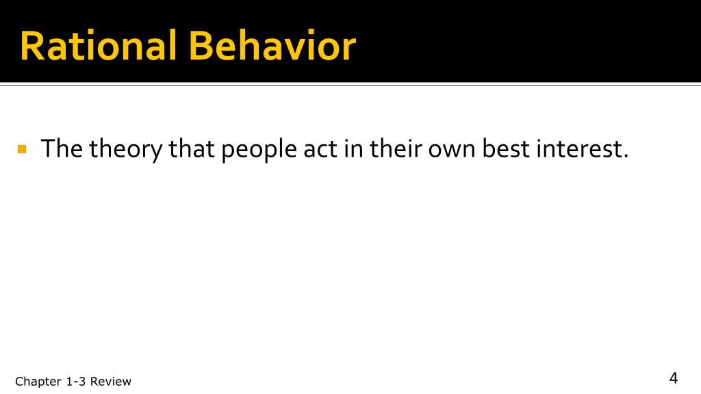 Rational Behavior • The theory that people act in their own best interest. Chapter 1-3 Review 4