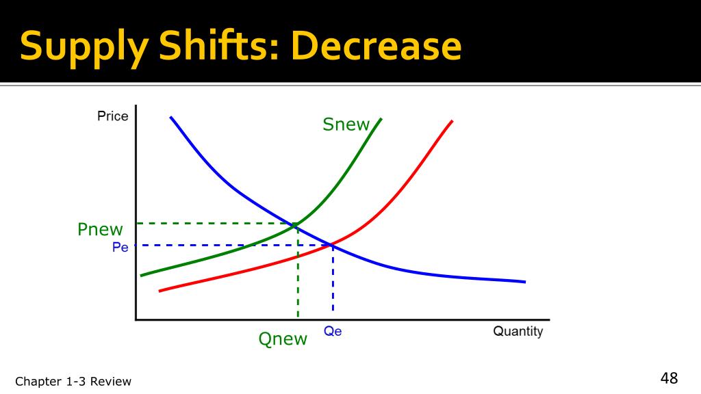 Supply Shifts: Decrease Snew Pnew Qnew Chapter 1-3 Review 48