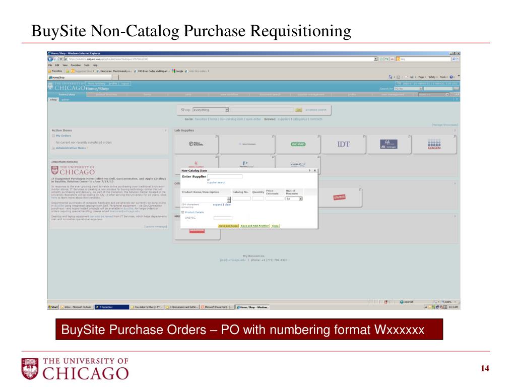 BuySite Non-Catalog Purchase Requisitioning BuySite Purchase Orders – PO with numbering format Wxxxxxx