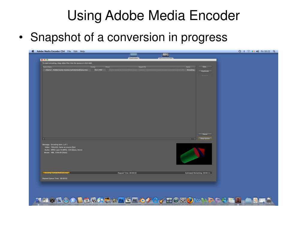 Using Adobe Media Encoder • Snapshot of a conversion in progress