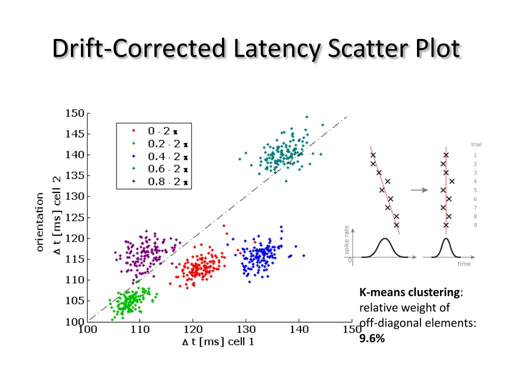 Drift-Corrected Latency Scatter Plot K-means clustering: relative weight of off-diagonal elements: 9.6%