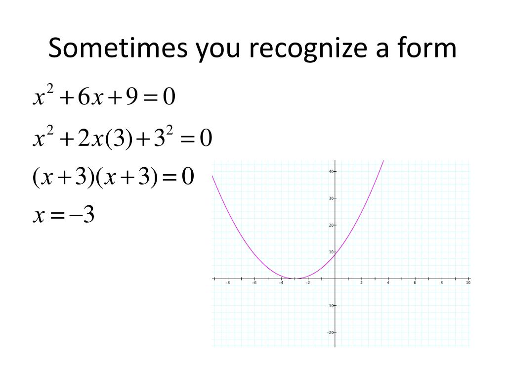 Solving Quadratics. Sometimes solving quadratics is easy. Sometimes you recognize a form. Sometimes you can factor. But no matter what, You can ALWAYS use the Quadratic Formula. Example. What does the QF say?. What does the QF say?. What does the QF say?. QF says. QF says.