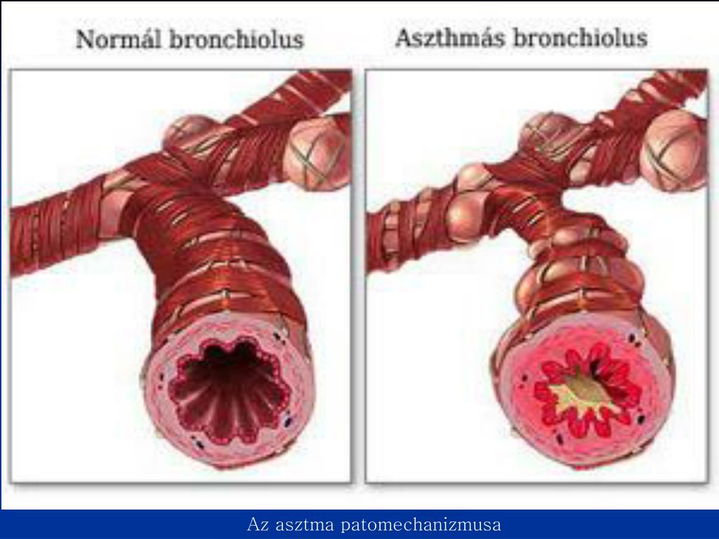 Az asztma -A három leggyakoribb allergiás betegség az asztma, a rhinitis és a különböző ételallergiák. -Az asztma a tüdőbe vezető főbb légutak - elsősorban a hörgők - krónikus gyulladásos megbetegedése. -Asztmát kiváltó tényezők Allergének (például pollenek, állati szövettörmelék vagy gomba),csótány és poratka,légszennyeződés,füst,erőteljes szagok, illatosított termékek vagy vegyszerek,légúti fertőzések (ideértve az egyszerű náthát is),fizikai terhelés (ideértve a sportolást),erőteljes érzelmek és stressz,hideg levegő,bizonyos gyógyszerek, ideértve a béta blokkolokat, az aszpirint és egyéb (nem szteroid típusú) gyulladáscsökkentőket,elelmiszerekhez adott szulfitok, tartósítószerek,reflux betegség (GERD), amely miatt a gyomor sósavtartalma visszajut a nyelőcsőbe, és ez aszthmát indukálhat, illetve ronthatja a már meglévő betegséget,orrmelléküreg gyulladás (arc-, illetve homloküreg-gyulladás). -Nagyobb valószínűséggel alakulhat ki asztma, ha a családban már van valakinek illetve, ha Ön érzékenyebb a környezeti allergének, vagy irritáló anyagokkal szemben. Korai és gyakori fertőzéses megbetegedések, a tartós dohányfüst (akár passzív dohányzás) illetve bizonyos allergén expozíció tovább növelheti az asztma kialakulásának valószínűségét. -A legtöbb asztmás roham előtt bevezető, figyelmeztető tünetek alakulnak ki. Ezeknek a felismerése és a tünetek korai kezelése megelőzheti a roham teljes kifejlődését, illetve a további állapotromlást megakadályozhatja.
