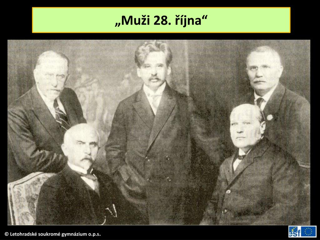 5. Tomáš Garrigue MASARYK (1850 – 1937) 1914-15 pobýval ve Švýcarsku 1915 odchází přes Paříž do Londýna 1917 navštívil Rusko 1918 v Rusku a z Vladivostoku přejel do USA 20. 12. se vrací domů