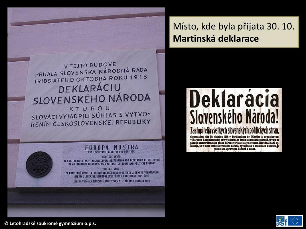 15. Místo, kde byla přijata 30. 10. Martinská deklarace