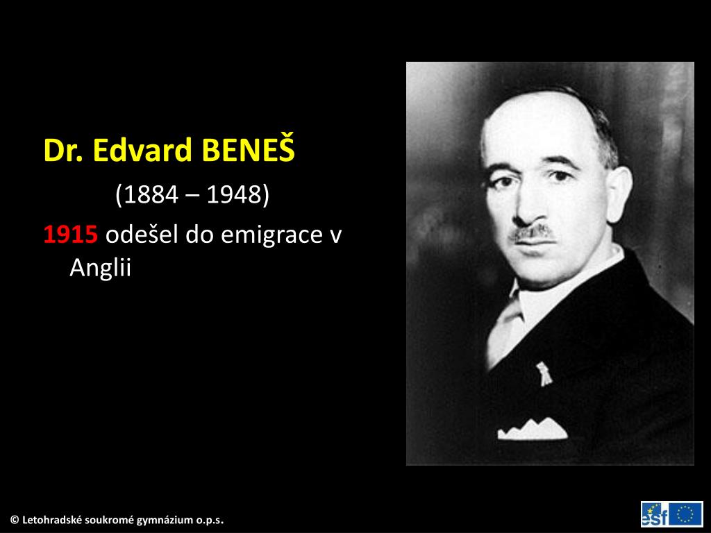 6. Dr. Edvard BENEŠ (1884 – 1948) 1915 odešel do emigrace v Anglii