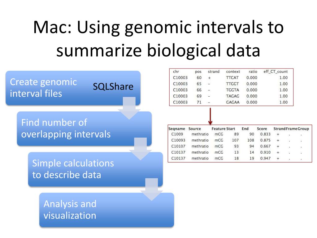 Mac: Using genomic intervals to summarize biological data SQLShare