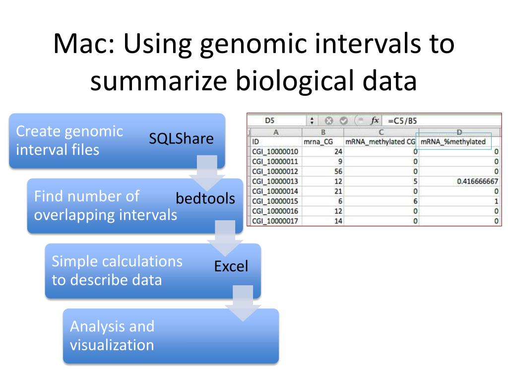 Mac: Using genomic intervals to summarize biological data SQLShare bedtools Excel R