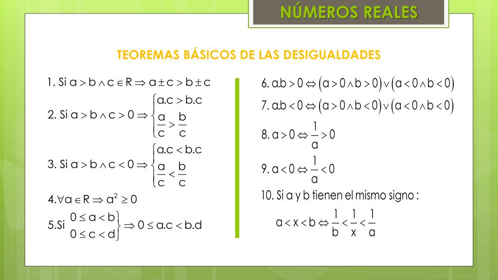 NÚMEROS REALES TEOREMAS BÁSICOS DE LAS DESIGUALDADES