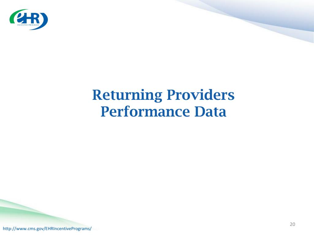 Providers Included • This data-only analysis shows our earliest adopters who have attested, but does not inform us on barriers to attestation. • At the time of the analysis • 190,260 EPs had attested • 190,047 Successfully • 213 Unsuccessfully • 2,800 Hospital had attested • All successfully