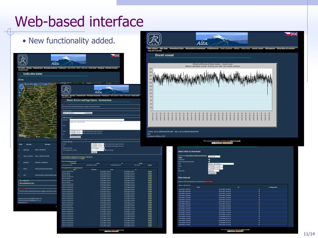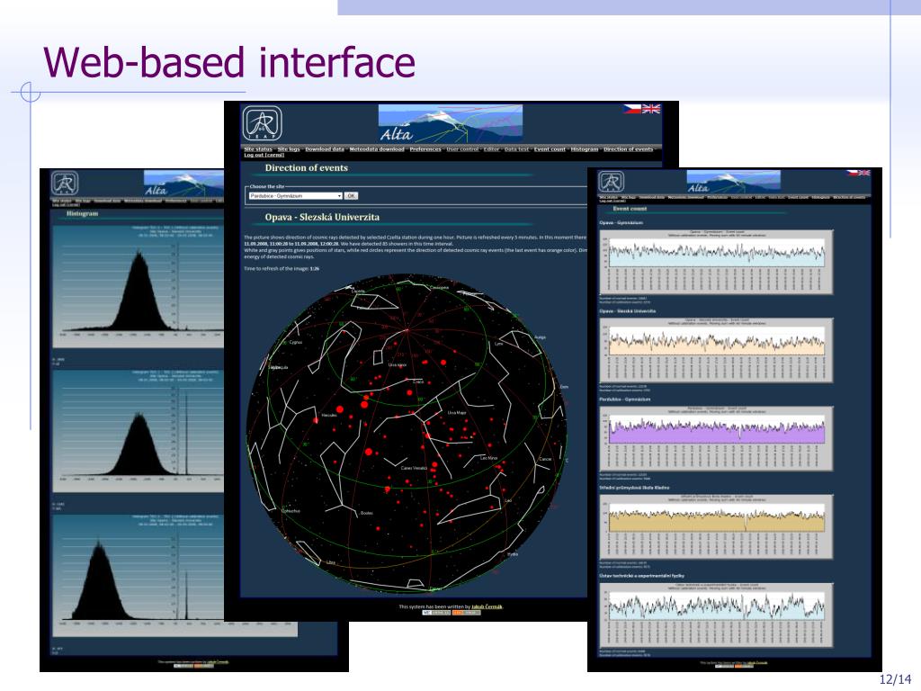 Meteorological station • Flux of detected showers is correlated with the atmospheric pressure. • We provide the detection stations with the meteorological station, measured data are automatically stored on PC. • Collaboration with the Czech Hydrometeorological Institute –they provide us all necessary historical data measured with the professional stations. Disadvantage: for some detection stations, the professional station is not near.