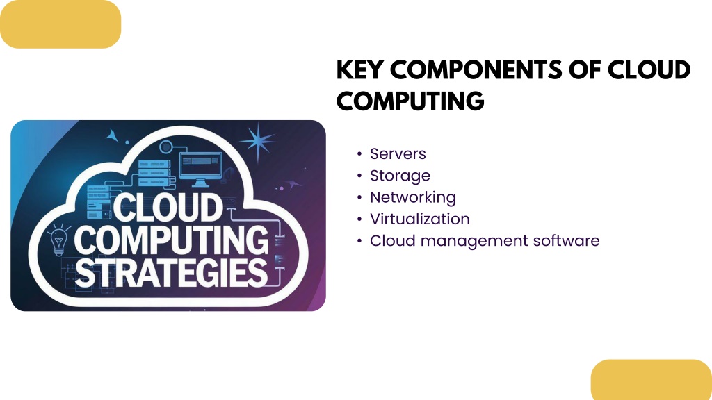 KEY COMPONENTS OF CLOUD COMPUTING • Servers • Storage • Networking • Virtualization • Cloud management software