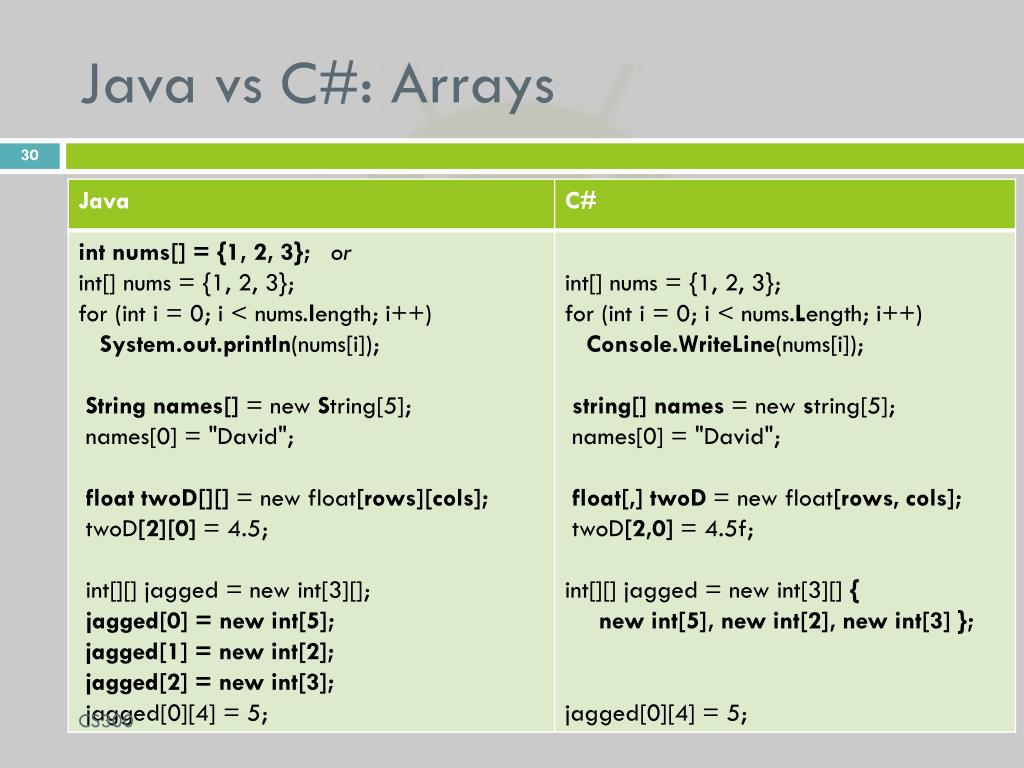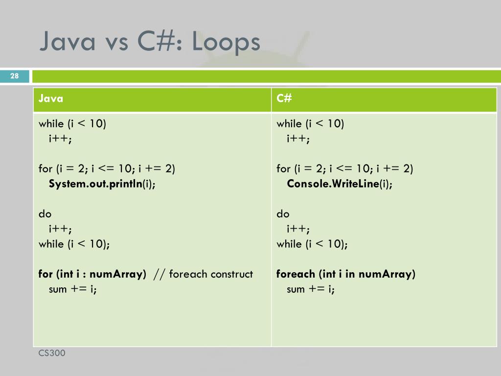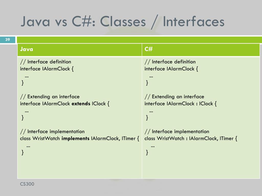 Java vs C# • Not so different from each other • C# versus Java : syntactic differences • C# versus Java : a developer's perspective CS300