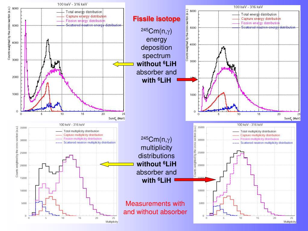 Fissile isotope 245Cm(n,g) energy deposition spectrum without6LiH absorber and with 6LiH 245Cm(n,g) multiplicity distributions without6LiH absorber and with 6LiH Measurements with and without absorber