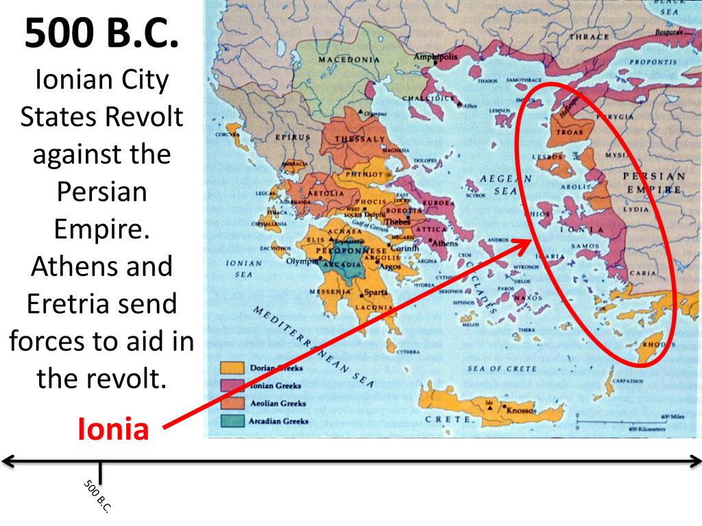 500 B.C. Ionian City States Revolt against the Persian Empire. Athens and Eretria send forces to aid in the revolt. Ionia 500B.C.