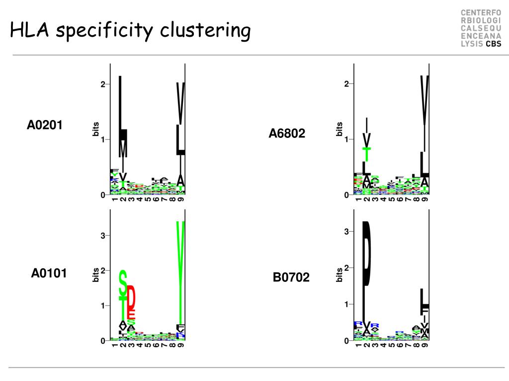 HLA specificity clustering A0201 A6802 A0101 B0702