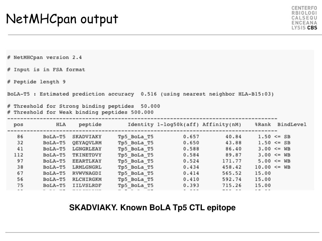 NetMHCpan output SKADVIAKY. Known BoLA Tp5 CTL epitope