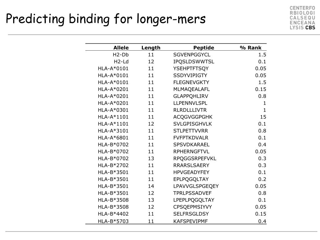 HLA polymorphism • ~70 HLA alleles are characterized by binding data • Reliable MHC class I binding predictions (NetMHC-3.2) for ~50 HLA A and B molecules • No methods for HLA-C, and HLA-E • Long way to cover 2500! • And very few non-human species have been characterized
