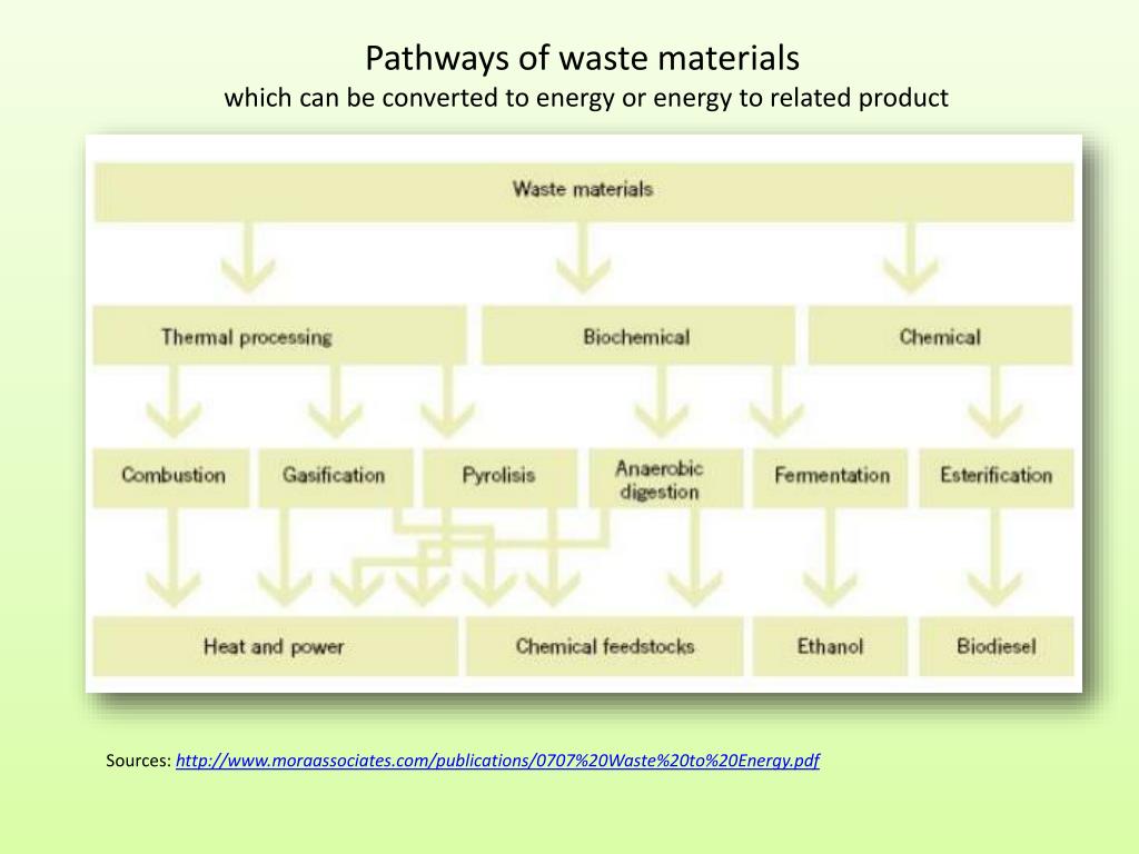 Pathways of waste materials which can be converted to energy or energy to related product Sources:http://www.moraassociates.com/publications/0707%20Waste%20to%20Energy.pdf