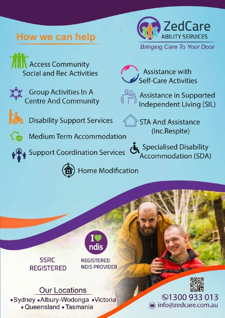 ZedCare Ability Services is one of the leading registered NDIS providers in Sydney offers most cordial and compassionate disability services. This includes assistance in self care activities, community and social activities, STA and respite care, SIL, SDA, Home modification and many more. https://www.zedcare.com.au