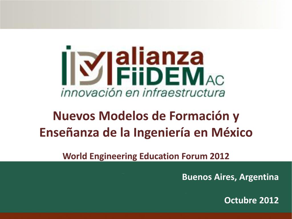 Nuevos Modelos de Formación y Enseñanza de la Ingeniería en MéxicoWorld Engineering Education Forum 2012 Buenos Aires, Argentina Octubre 2012