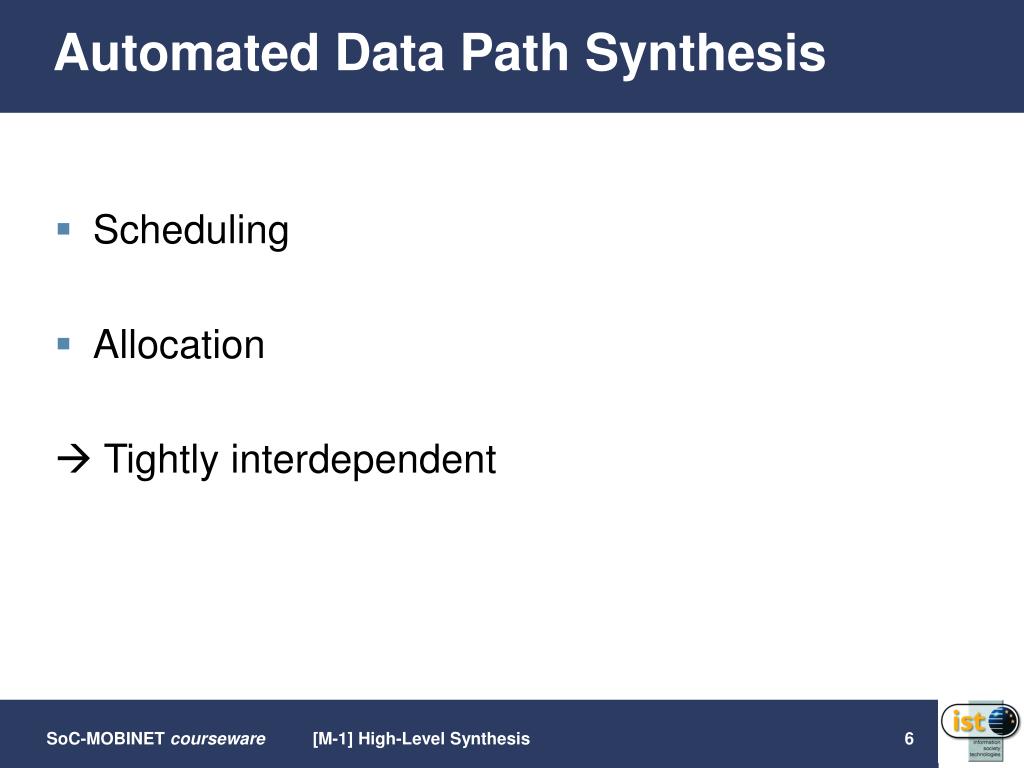 Automated Data Path Synthesis • Scheduling • Allocation Tightly interdependent [M-1] High-Level Synthesis