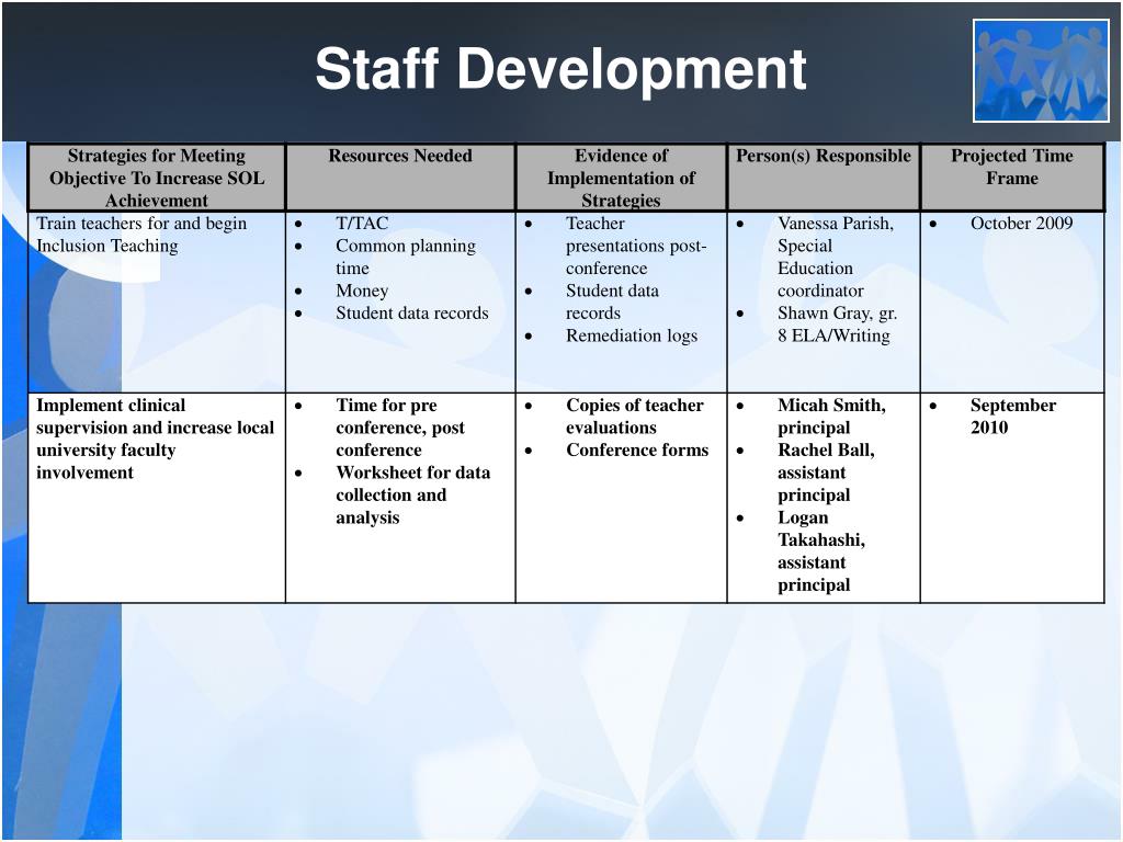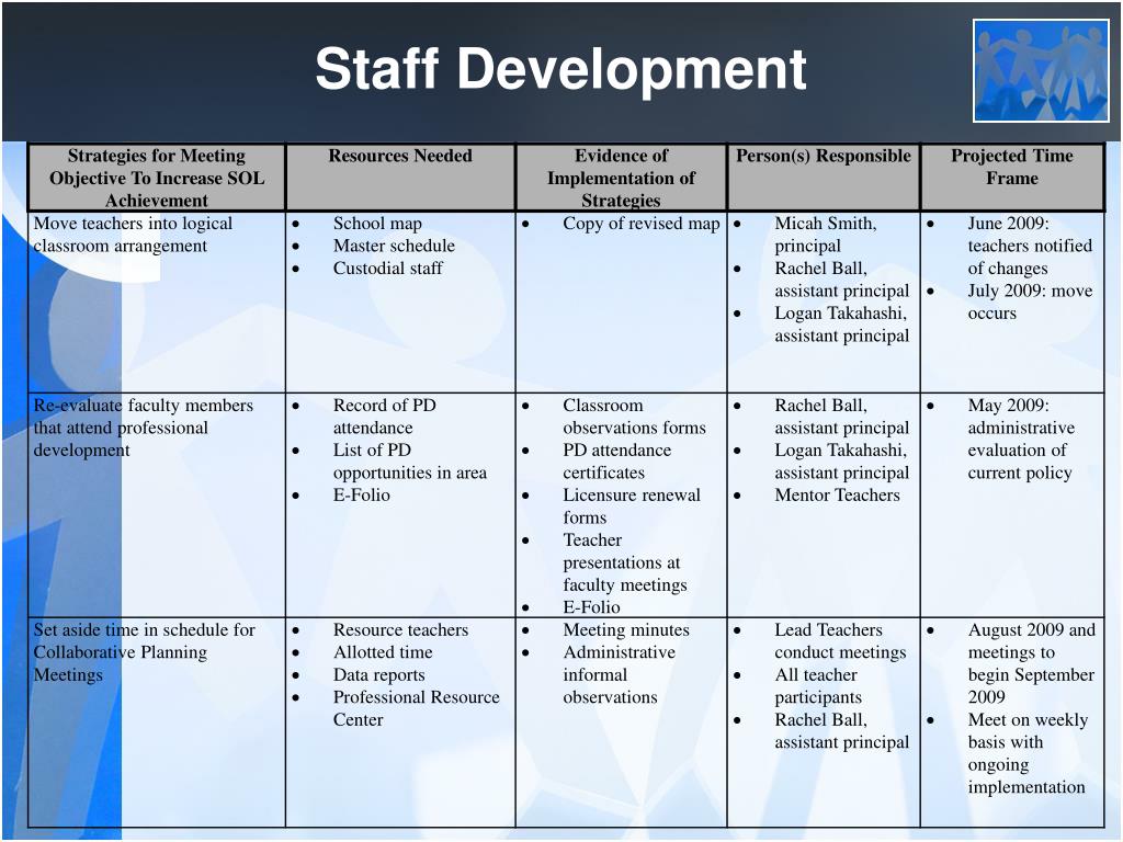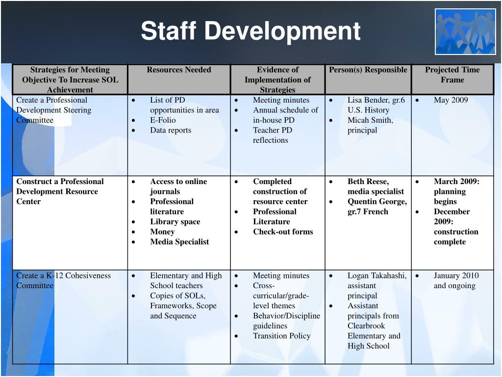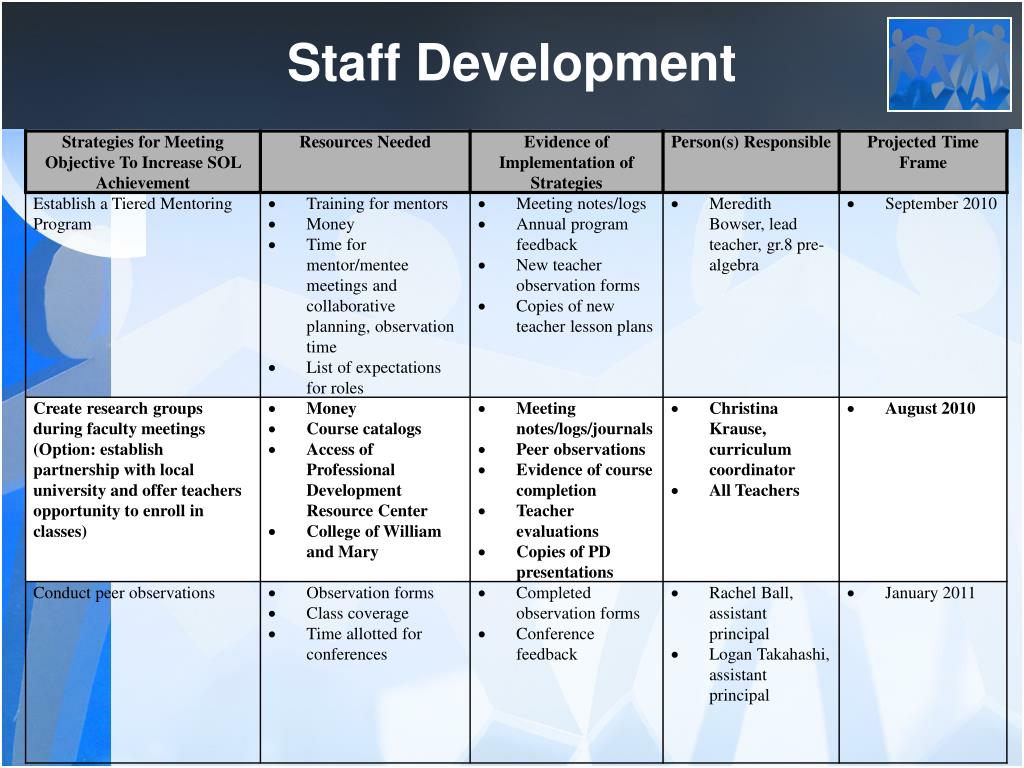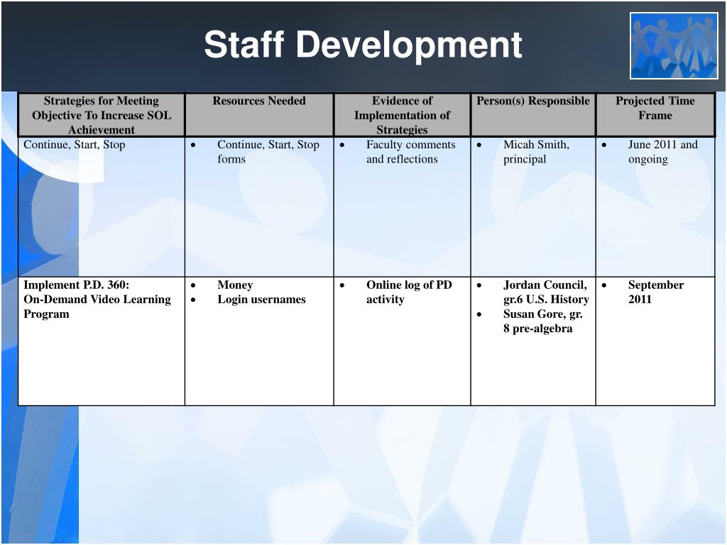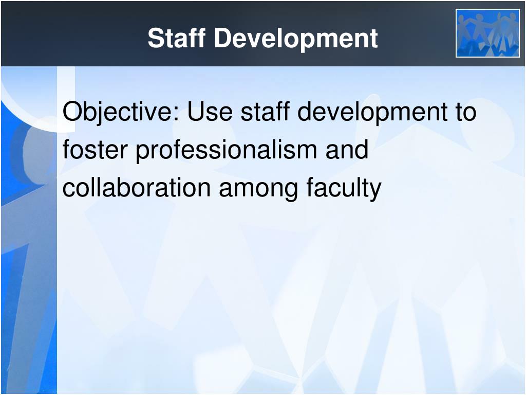 Staff Development Objective: Use staff development to foster professionalism and collaboration among faculty