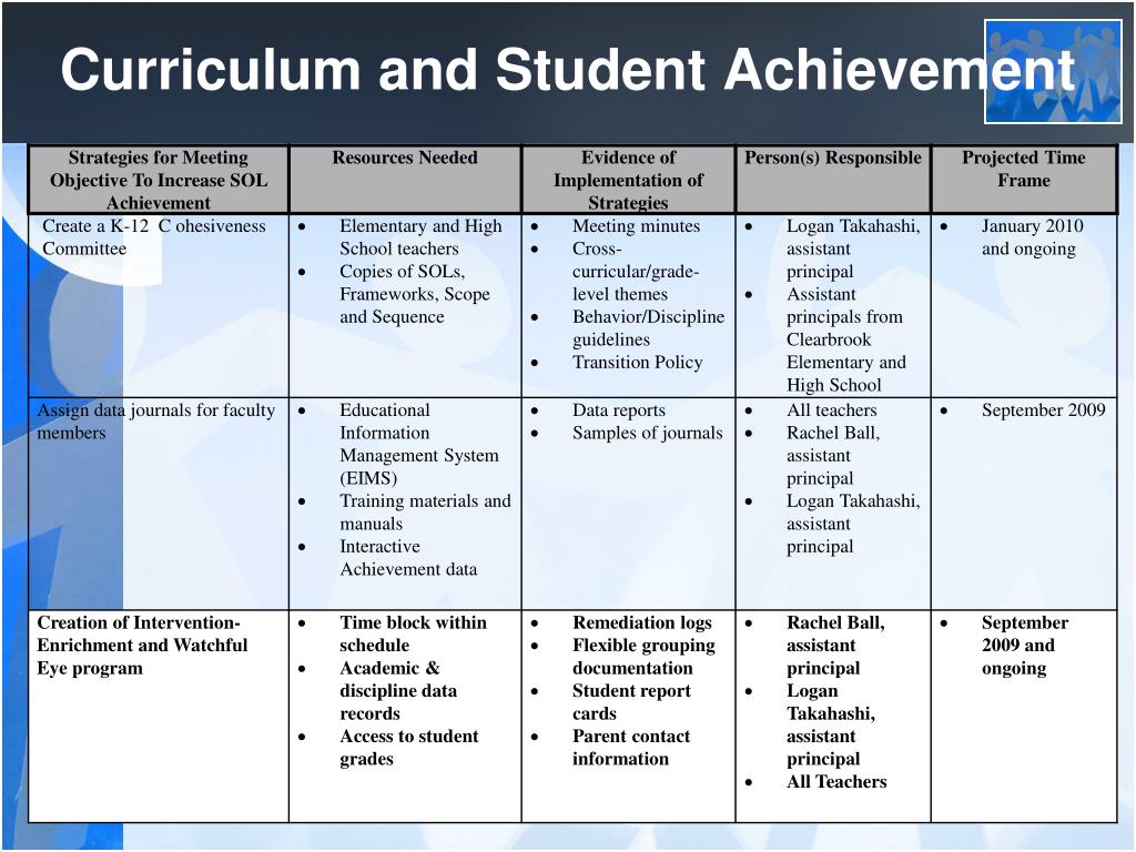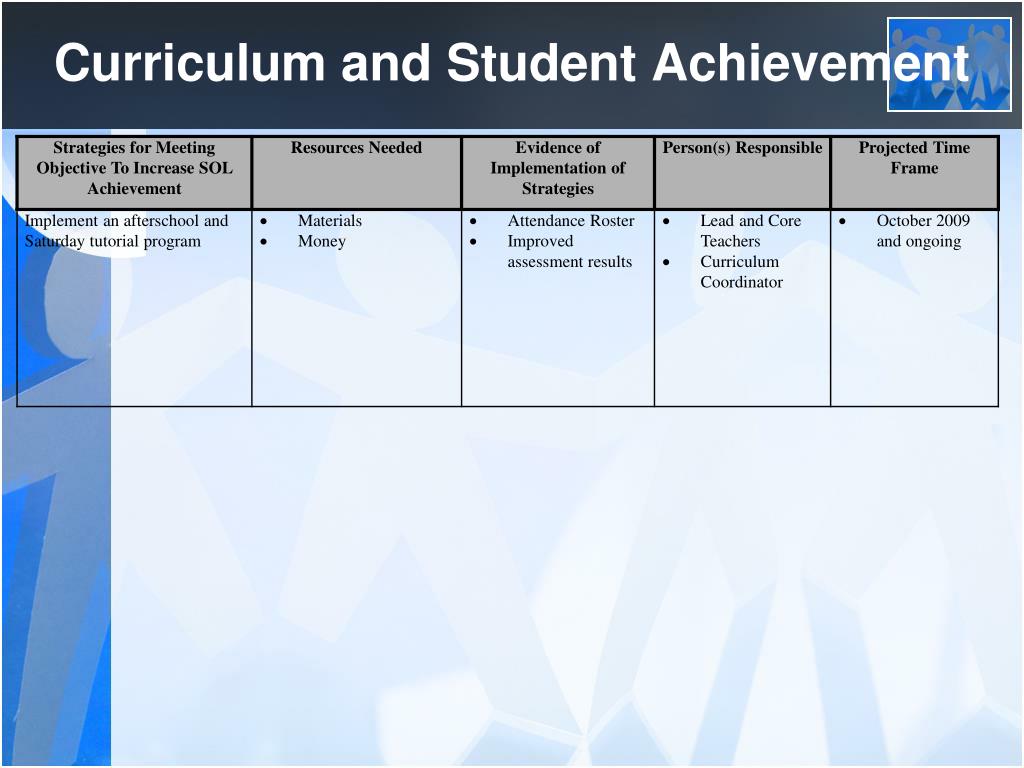 Curriculum and Student Achievement Objective: Implement qualitative and quantitative data to align instructional strategies with manifestations of the curriculum and the standards; Increase overall student achievement and promote continuous academic improvement on local, state, and national standards and assessments