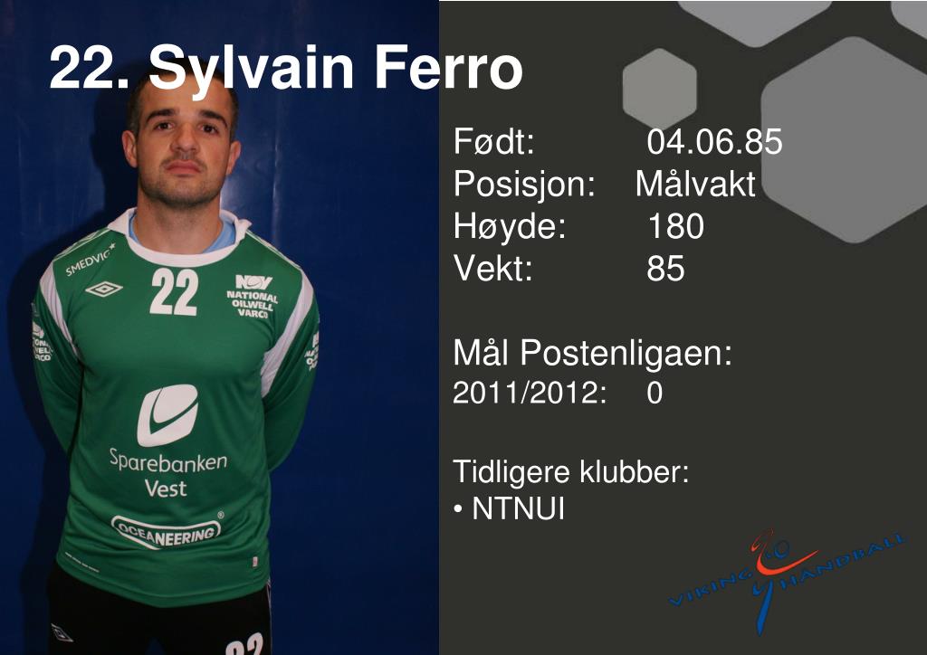 22. SylvainFerro • Født: 04.06.85Posisjon: Målvakt • Høyde: 180 • Vekt: 85 • Mål Postenligaen: • 2011/2012: 0 • Tidligere klubber: • NTNUI