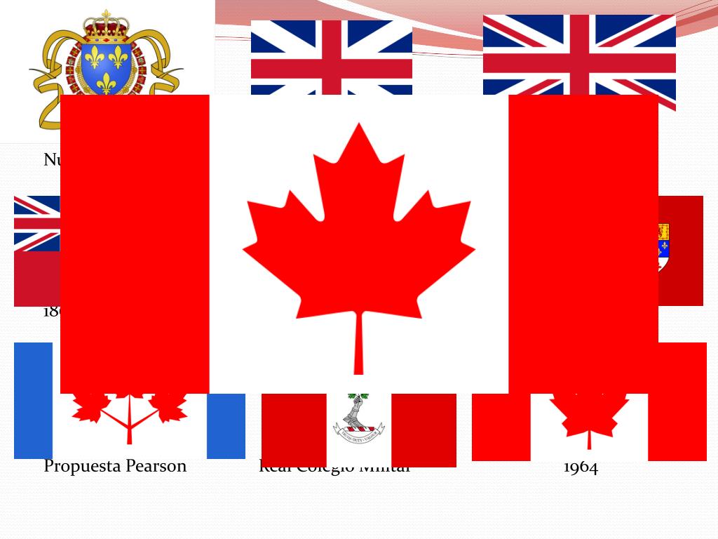 Nueva Francia Unión de Gran Bretaña Unión del Reino Unido (1763-1800) (1801-actual) 1868-1921 1921-1957 1957-1965 Propuesta Pearson Real Colegio Militar 1964