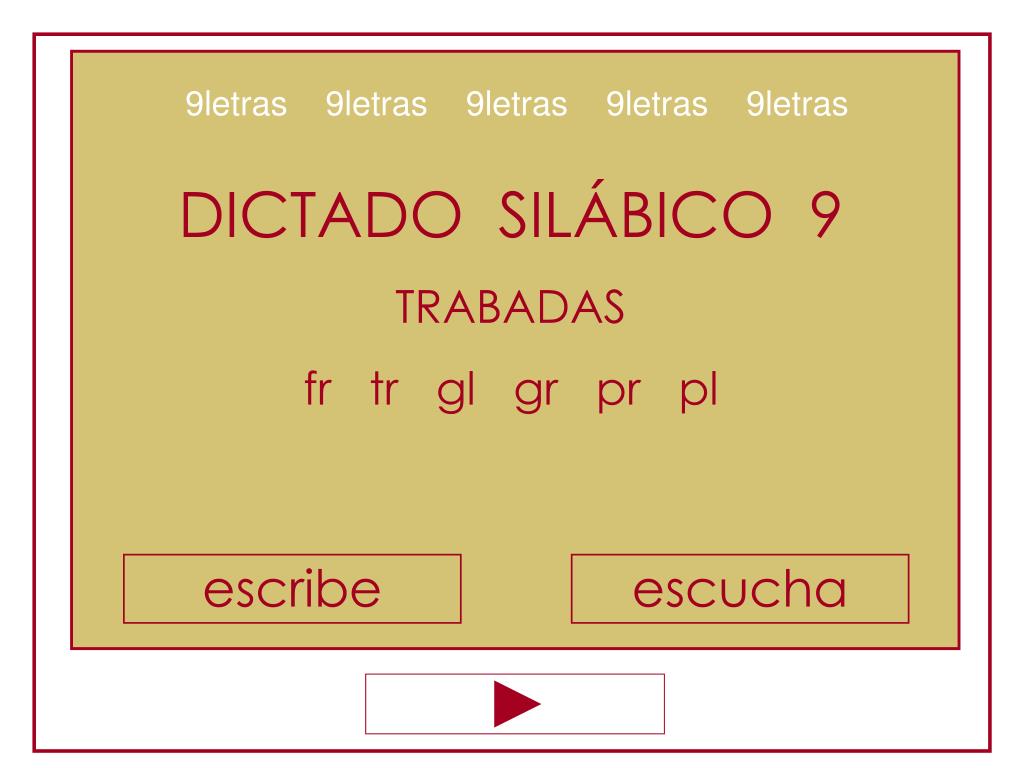 9letras 9letras 9letras 9letras 9letras DICTADO SILÁBICO 9 TRABADAS fr tr gl gr pr pl escribe escucha