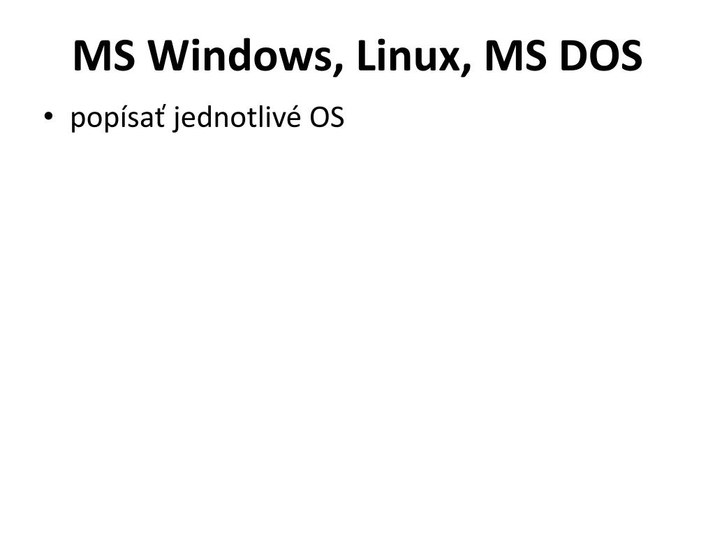 MS Windows, Linux, MS DOS • popísať jednotlivé OS
