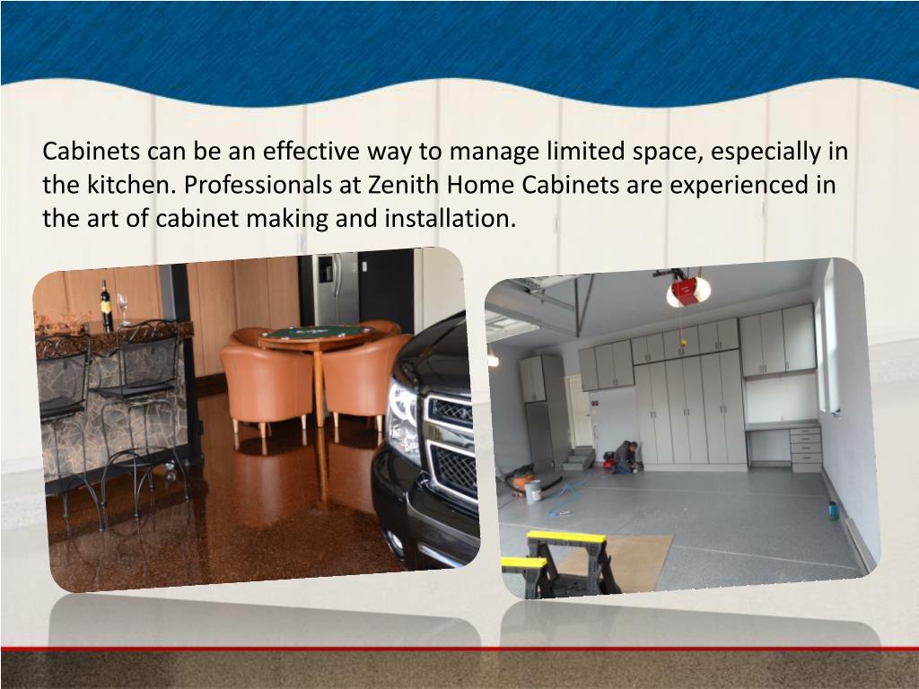Cabinets can be an effective way to manage limited space, especially in the kitchen. Professionals at Zenith Home Cabinets are experienced in the art of cabinet making and installation.