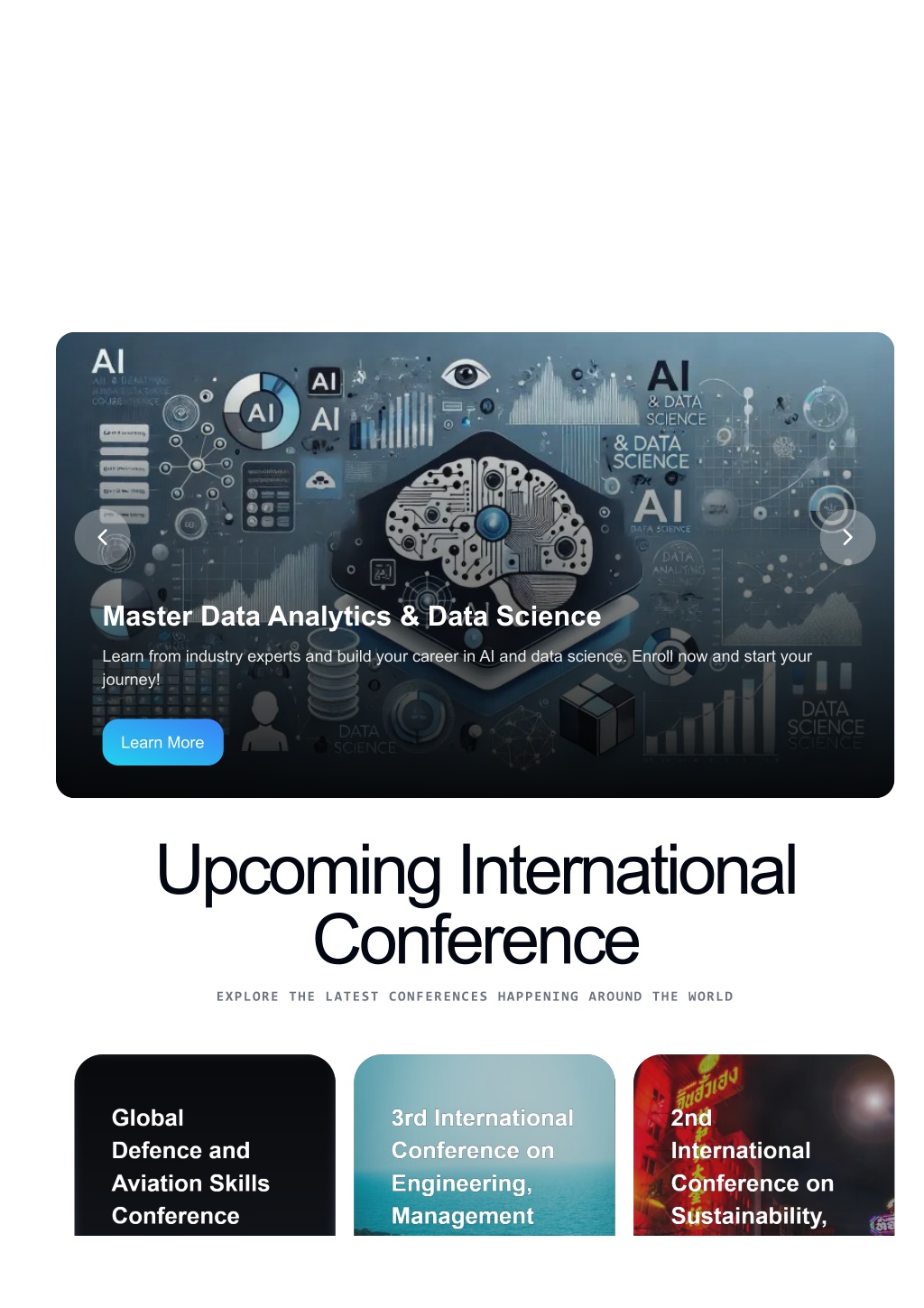 6. Master Data Analytics & Data Science Learn from industry experts and build your career in AI and data science. Enroll now and start your journey! Learn More Upcoming International Conference EXPLORE THE LATEST CONFERENCES HAPPENING AROUND THE WORLD